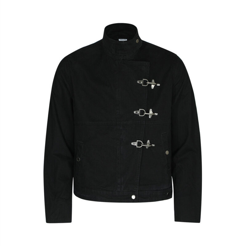 Urban Street Men’s Jacket, Stand Collar Patchwork Coat, Casual Loose Fit Workwear Top