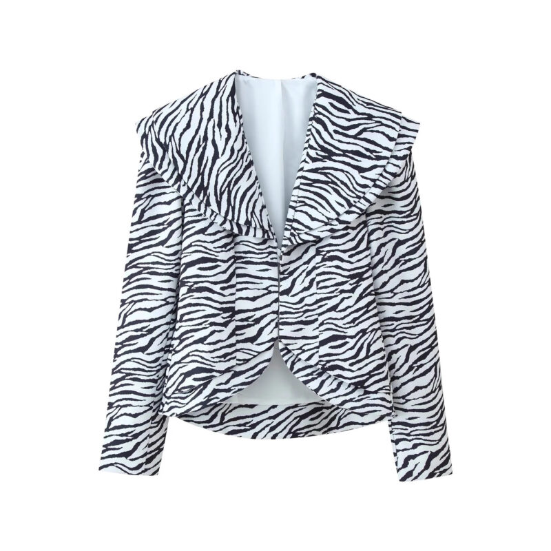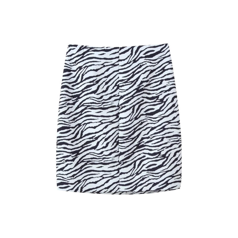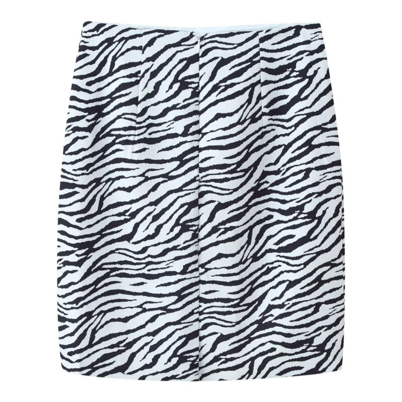 Zebra striped diagonal suit jacket+slit skirt