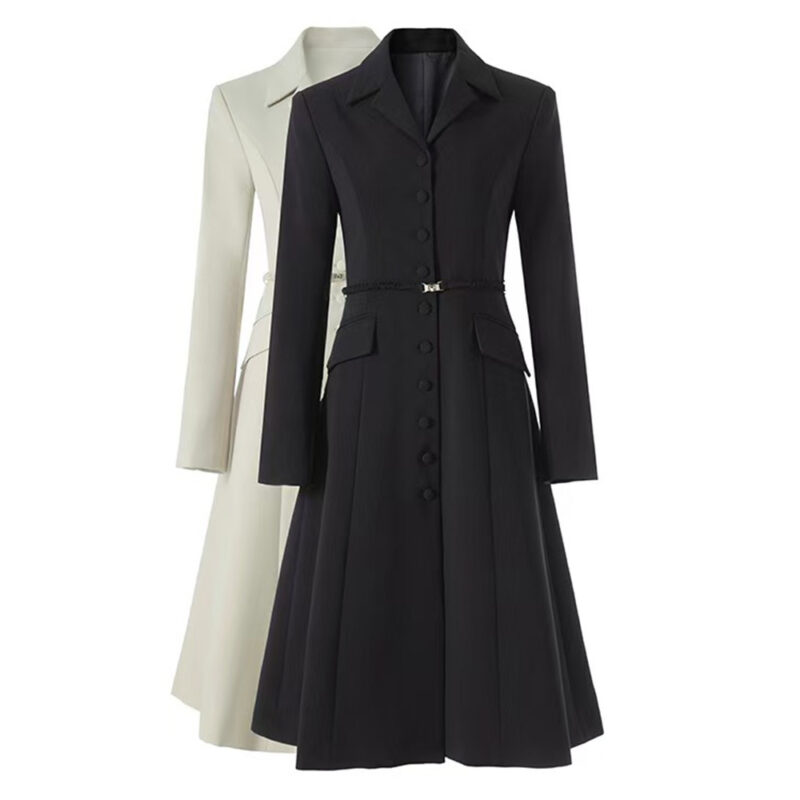 Windbreaker suit collar waistband cinched waist single breasted long windbreaker coat skirt coat