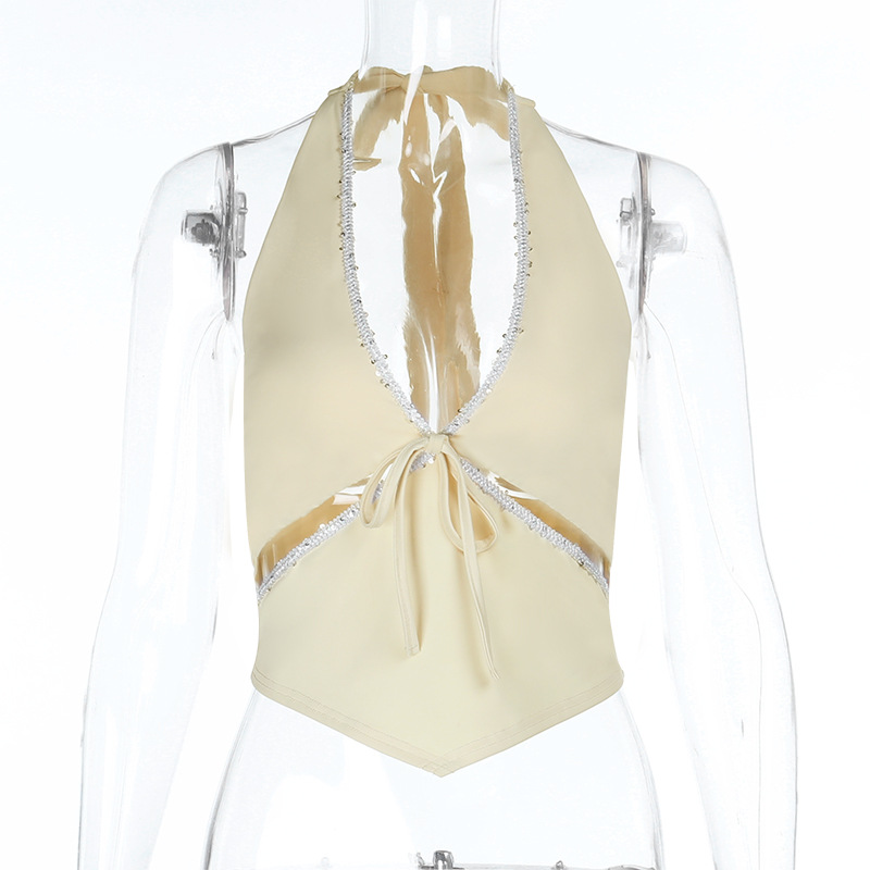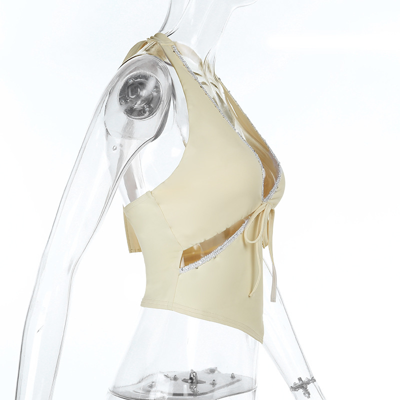 Be the first to review “Hanging neck solid color V-neck versatile short vest”