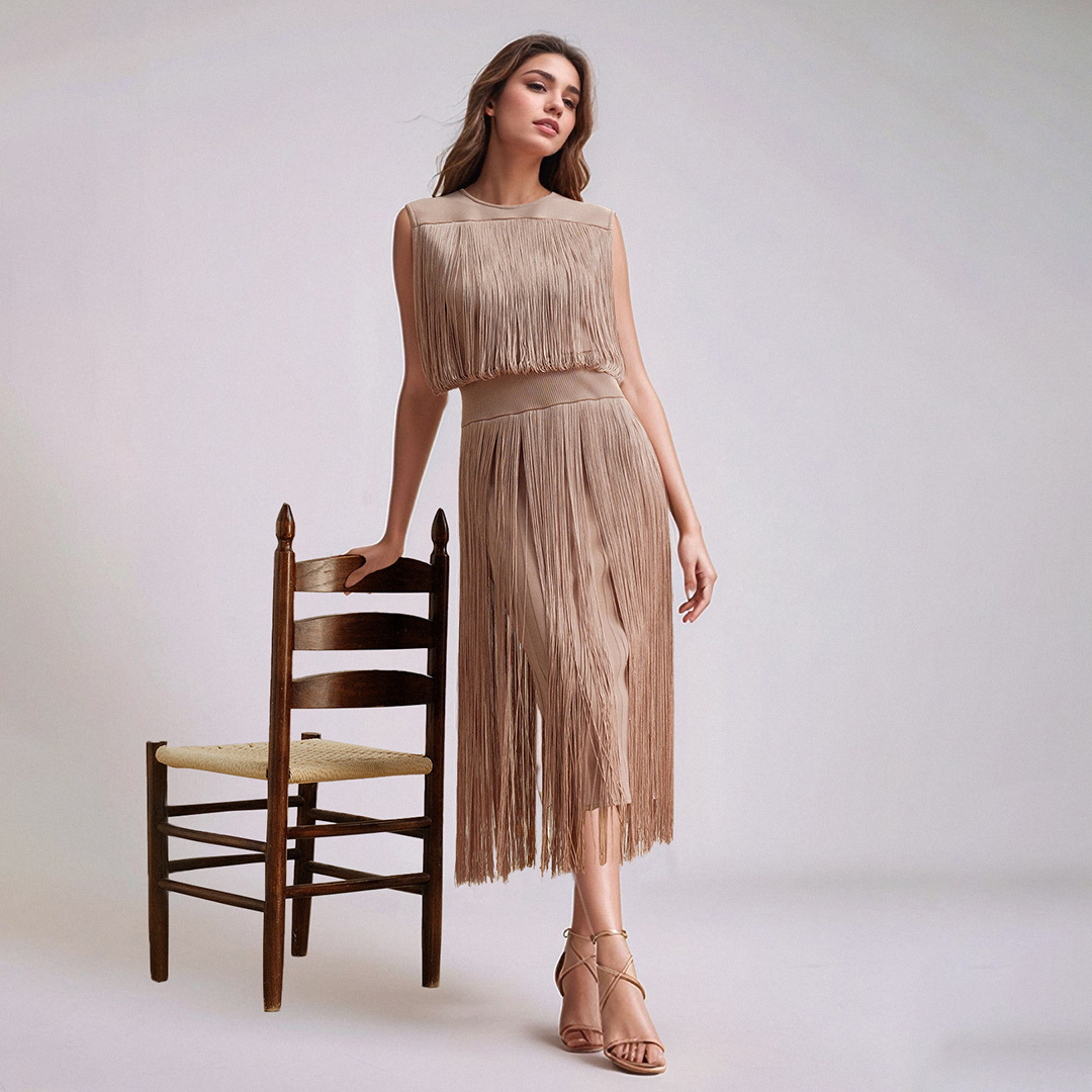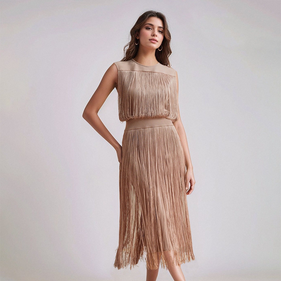 Be the first to review “Sleeveless dress, women’s tassel mid length skirt”