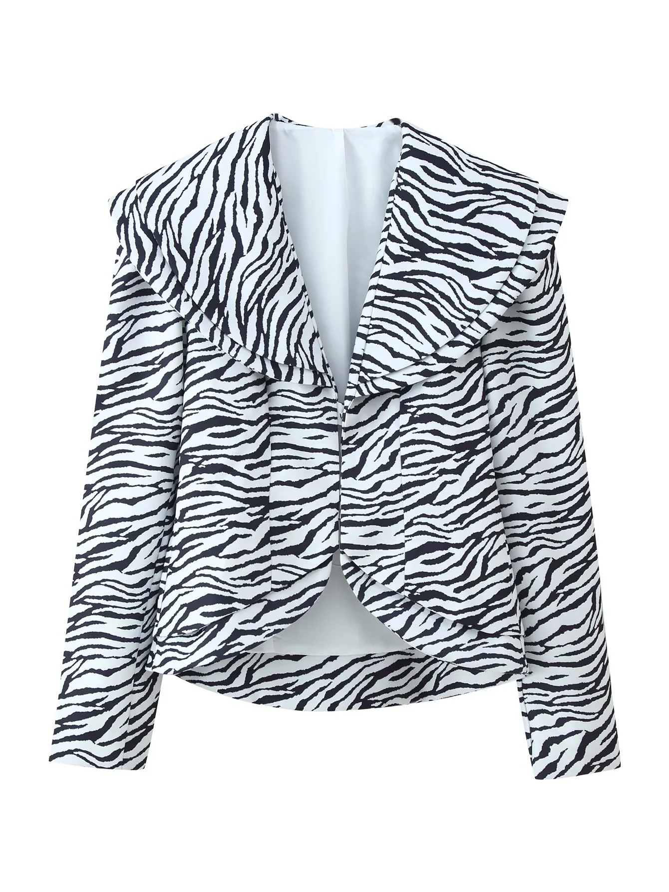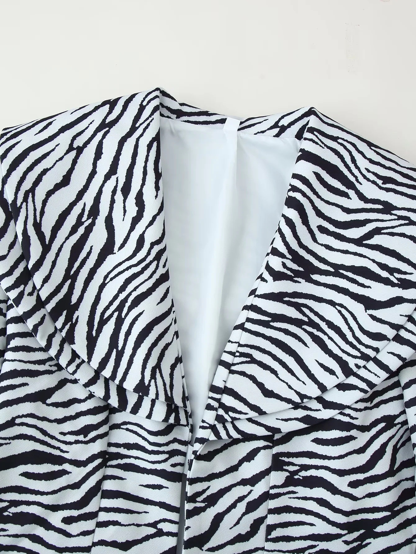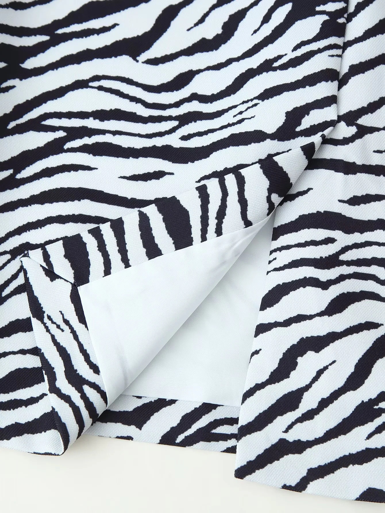 Zebra striped diagonal suit jacket+slit skirt